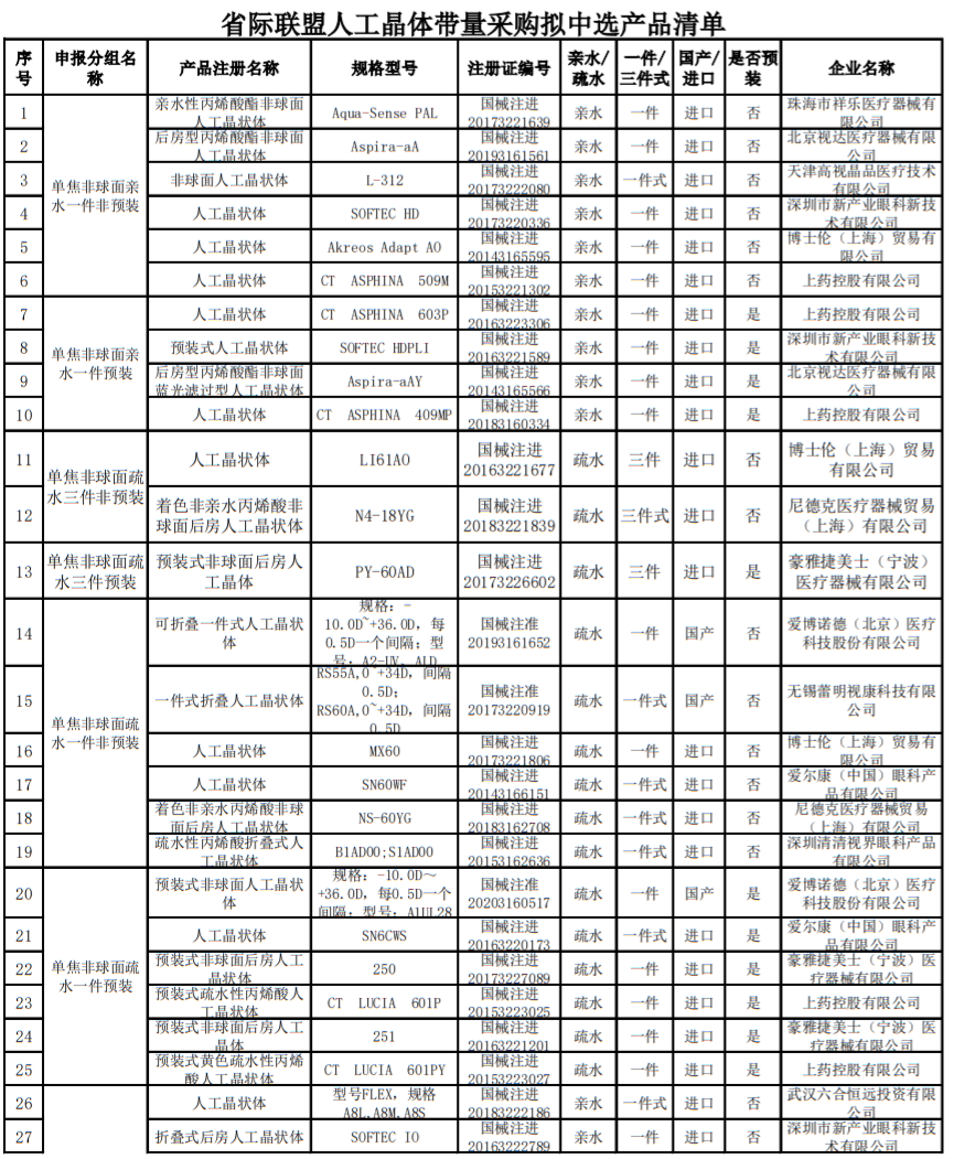 帶量采購文件顯示,寧夏、甘肅、青海、新疆、新疆建設(shè)兵團、湖南、廣西、貴州、海南和陜西10個省(區(qū)、兵團)區(qū)域內(nèi)三級公立醫(yī)療機構(gòu)、具備開展人工晶體相關(guān)手術(shù)的二級公立醫(yī)療機構(gòu)等將參加本次聯(lián)合帶量采購。