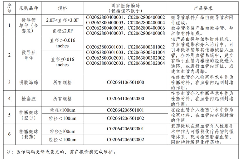 同日(12月6日),由甘肅牽頭的24省外周介入聯(lián)盟集采2號(hào)文發(fā)布,采購(gòu)周期原則上為2年,品類(lèi)包括外周血管介入類(lèi)微導(dǎo)管(含套裝)、微導(dǎo)絲、明膠海綿、栓塞膠、栓塞微球。具體如下:
