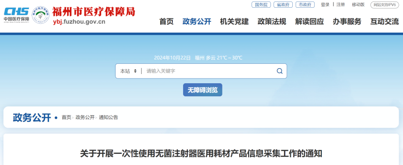 近日,福建福州醫(yī)保局發(fā)布《關(guān)于開展一次性使用無菌注射器醫(yī)用耗材產(chǎn)品信息采集工作的通知》,擬開展一次性使用無菌注射器集中帶量采購工作。
