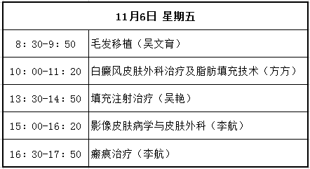 課程內(nèi)容涉及皮膚外科的各種理論和基本技能及常見(jiàn)術(shù)式,諸如皮瓣、植皮等復(fù)雜成形技術(shù),Mohs顯微描記手術(shù),毛發(fā)移植,磨削,腋臭微小切口手術(shù),皮膚腫瘤診治、激光美容、皮膚鏡應(yīng)用等。主要授課人包括李航、楊淑霞、涂平等多年從事皮膚外科或皮膚病理的專家。課程時(shí)間