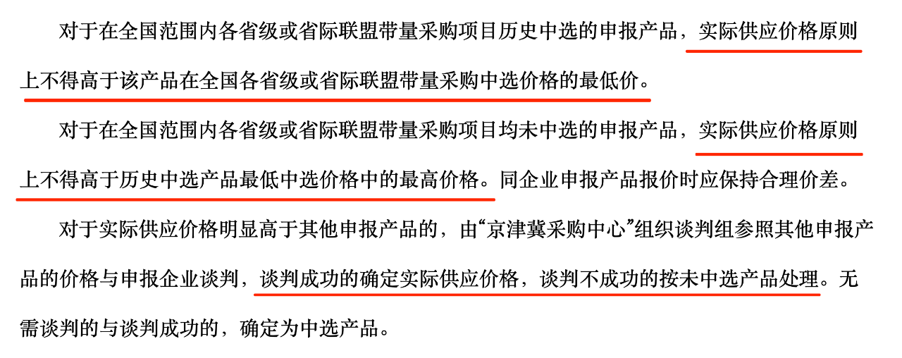 采購周期內(nèi),中選企業(yè)的非中選產(chǎn)品按不高于本項目該企業(yè)同品種最高中選價格掛網(wǎng)的,且不高于其在其他省級或省際聯(lián)盟帶量采購中選價格的,可視為中選產(chǎn)品;未中選企業(yè)的產(chǎn)品按不高于本項目同品種最高中選價掛網(wǎng)的,在醫(yī)療機構(gòu)考核時不視為非中選產(chǎn)品。