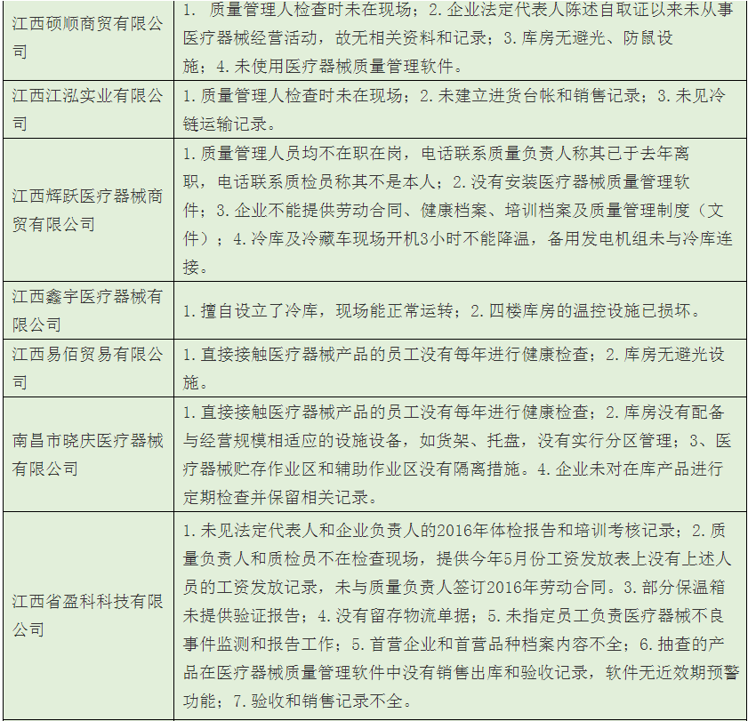 歸結(jié)起來,南昌市藥監(jiān)局經(jīng)過飛檢后發(fā)現(xiàn),該市械商主要存在以下6方面的不依法經(jīng)營或者不符合醫(yī)械GSP要求問題: