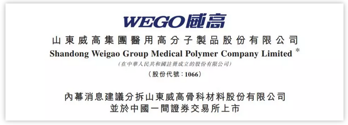 近日山東威高發(fā)布公告稱,內(nèi)幕消息建議分拆山東威高骨科材料股份有限公司(下稱威高骨科),并于中國一間證券交易所上市。