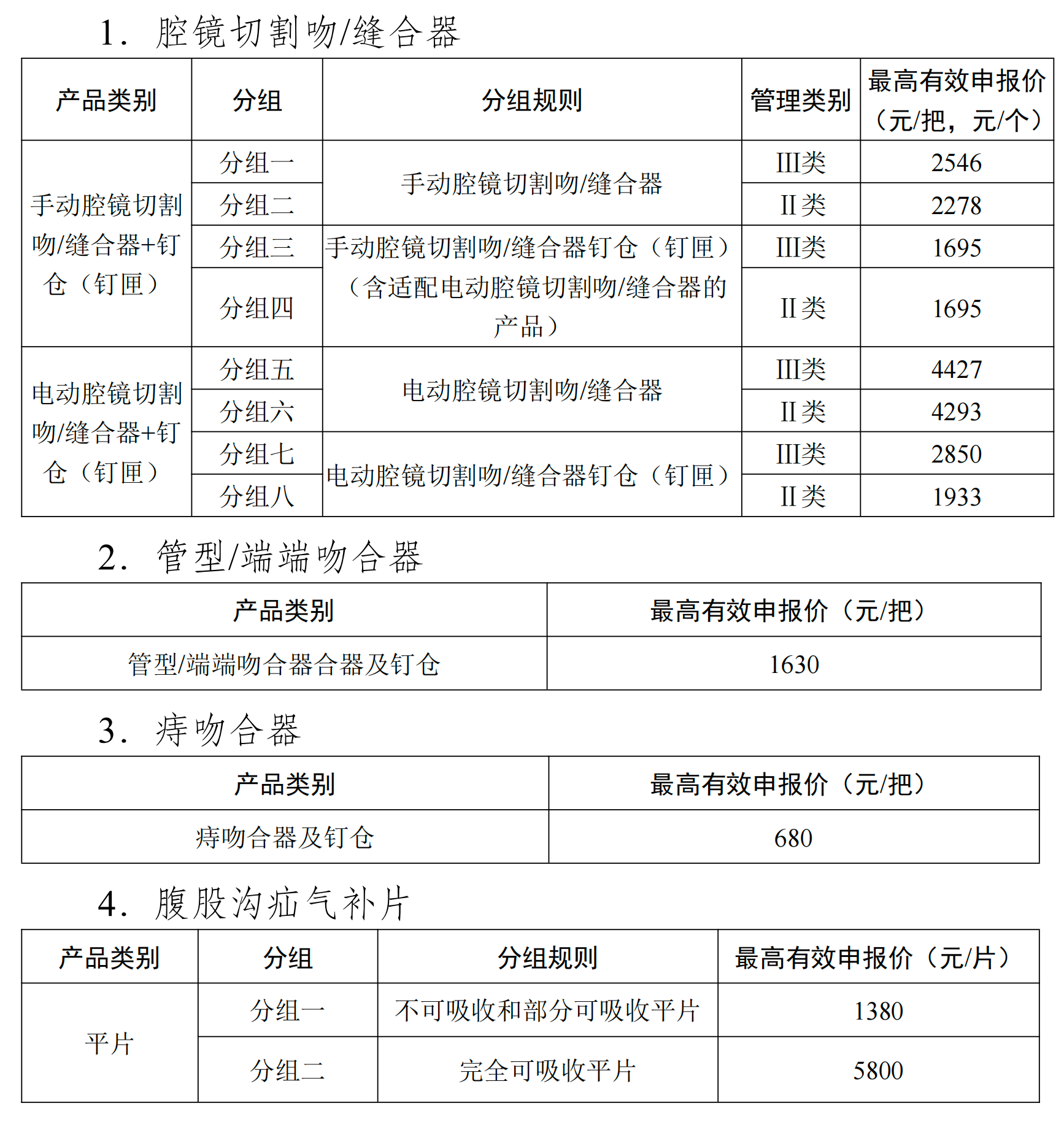 吻合器、腹股溝疝氣補(bǔ)片、靜脈留置針再降價
