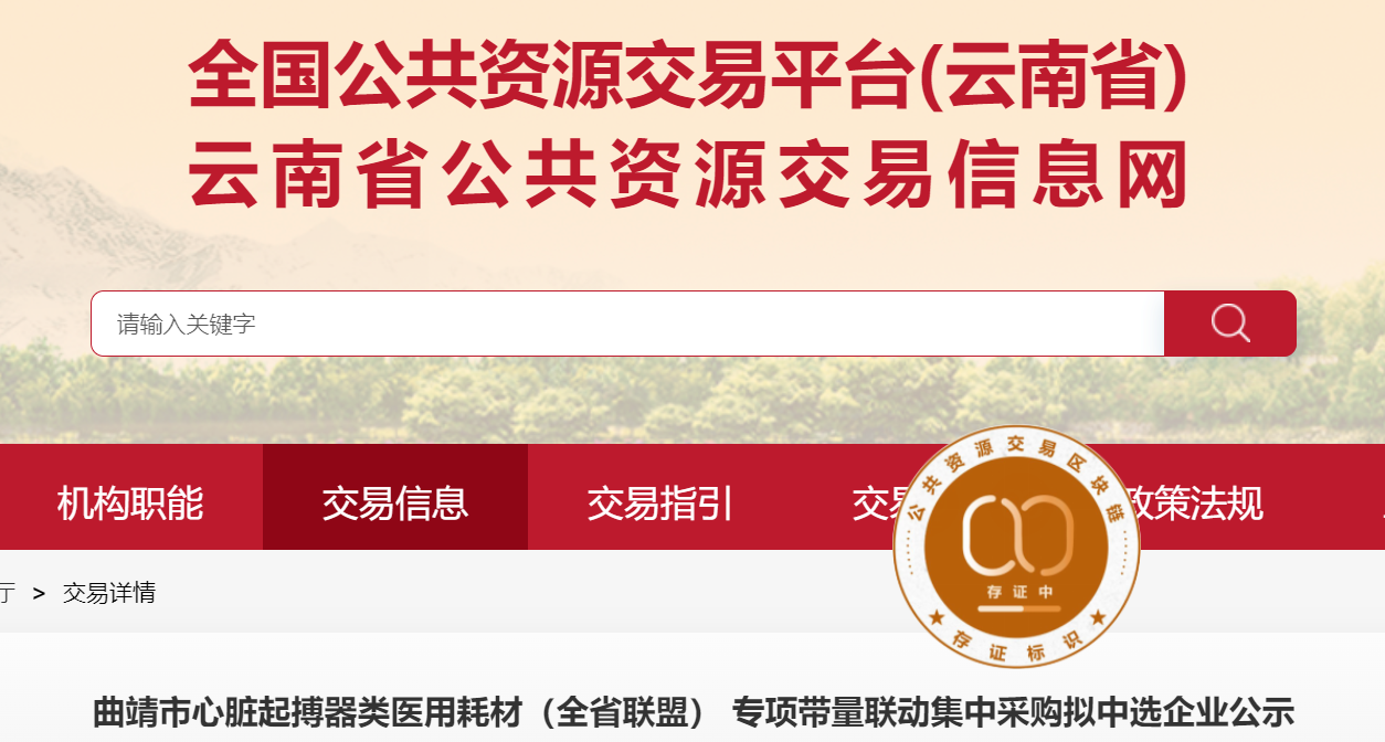 近日,云南公共資源交易中心公布曲靖市心臟起搏器類醫(yī)用耗材(全省聯(lián)盟)專項(xiàng)帶量聯(lián)動(dòng)集中采購(gòu)擬中選企業(yè)及擬中選產(chǎn)品清單。