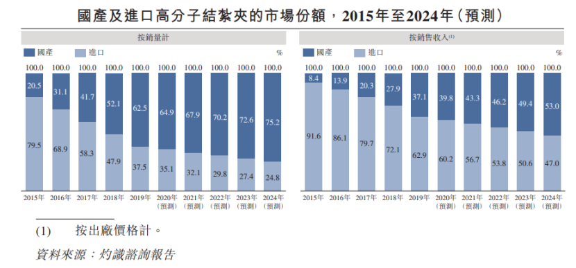 據(jù)灼識咨詢報告,預計到2024年中國結扎夾市場規(guī)模將達到40.86億元,其中高分子結扎夾市場規(guī)模28.33億元,2020-2024年復合增長率達25.2%,可吸收結扎夾市場規(guī)模12.53億元,2020-2024年復合增長率達29.2%。國產(chǎn)替代趨勢較為明顯。