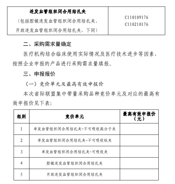 其中,福建牽頭開展血管組織閉合用結扎夾聯(lián)盟采購,也是首個發(fā)布集采征求意見稿的全國聯(lián)采。