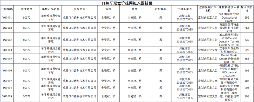 也就是說,此次四川牙冠競價掛網(wǎng)結果,也將在全國范圍內聯(lián)動。