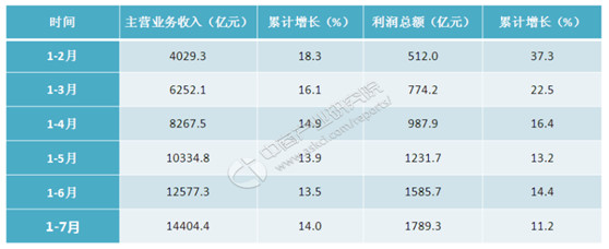 醫(yī)藥工業(yè)運(yùn)行數(shù)據(jù)顯示,2018年1-7月,我國(guó)醫(yī)藥行業(yè)主營(yíng)業(yè)務(wù)收入達(dá)14404.4億元,累計(jì)同比增長(zhǎng)14%,比1-6月上升了0.5個(gè)百分點(diǎn),行業(yè)實(shí)現(xiàn)利潤(rùn)總額達(dá)1789.3億元,累計(jì)同比增長(zhǎng)11.2%,比1-6月下降了3.2個(gè)百分點(diǎn)。