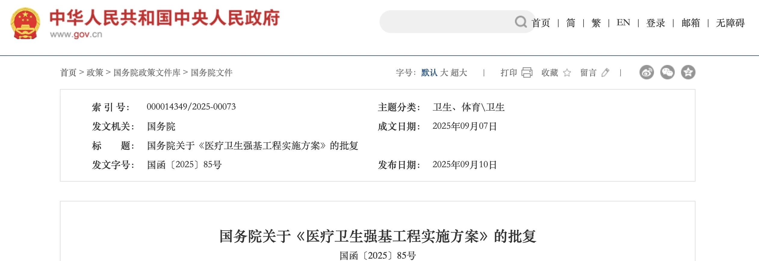 9月10日,據(jù)中國政府網(wǎng)消息,國務(wù)院批復(fù)同意《醫(yī)療衛(wèi)生強基工程實施方案》(簡稱《實施方案》),并附上方案全文。