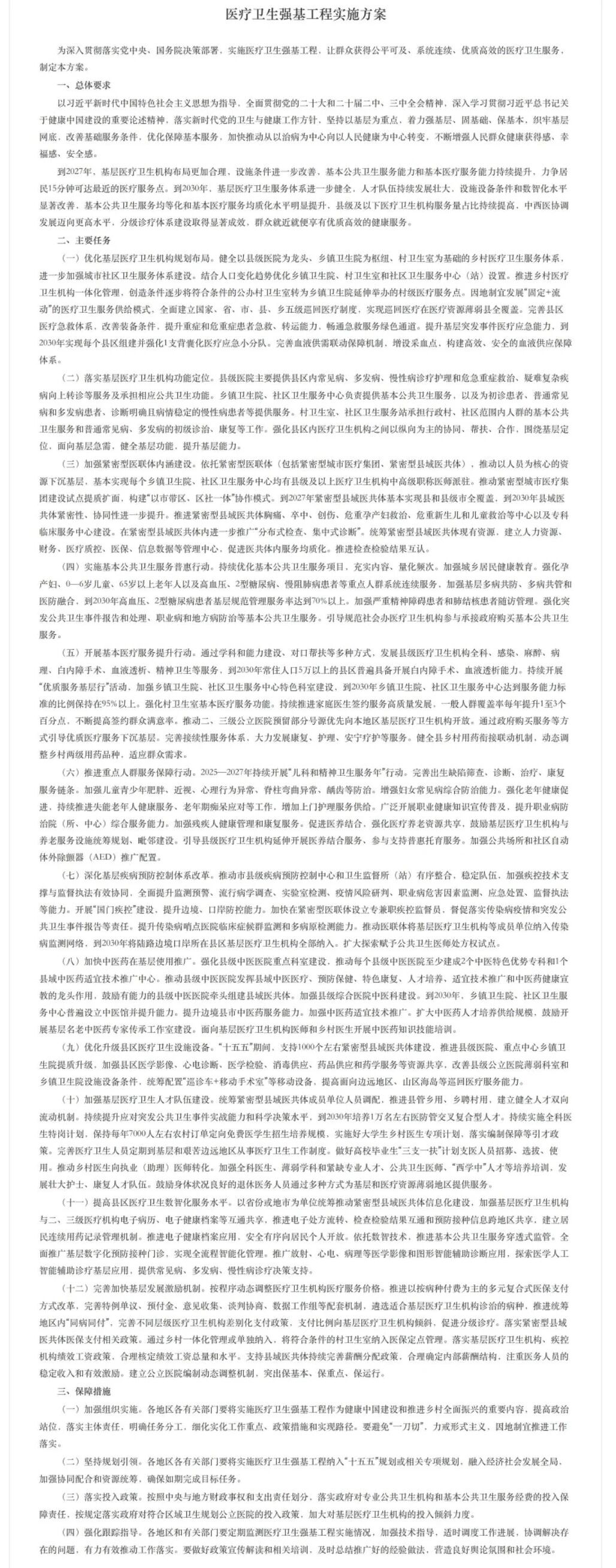 《醫(yī)療衛(wèi)生強基工程實施方案》正式發(fā)布