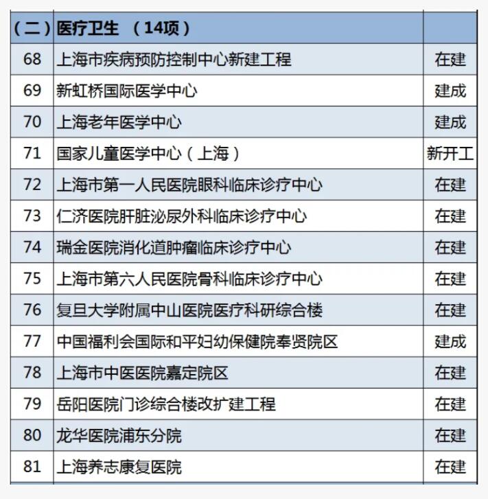 續(xù)建項(xiàng)目里含醫(yī)療衛(wèi)生項(xiàng)目18項(xiàng)