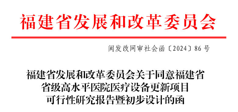6月18日,福建發(fā)改委發(fā)布《福建省發(fā)展和改革委員會(huì)關(guān)于同意福建省省級(jí)高水平醫(yī)院醫(yī)療設(shè)備更新項(xiàng)目可行性研究報(bào)告暨初步設(shè)計(jì)的函》。