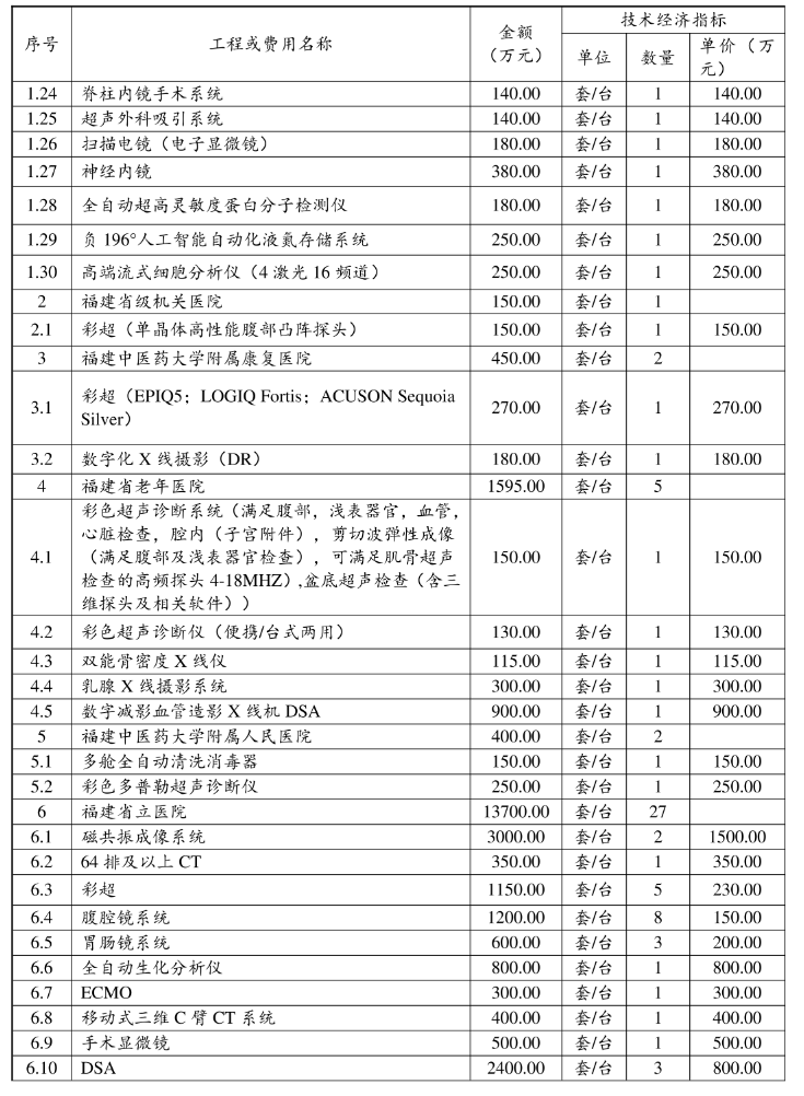項(xiàng)目建設(shè)規(guī)模及主要內(nèi)容:福建省立醫(yī)院、福建省腫瘤醫(yī)院、福建省級(jí)機(jī)關(guān)醫(yī)院、福建省老年醫(yī)院、福建醫(yī)科大學(xué)附屬協(xié)和醫(yī)院、福建醫(yī)科大學(xué)附屬第一醫(yī)院、福建醫(yī)科大學(xué)附屬第二醫(yī)院、福建中醫(yī)藥大學(xué)附屬人民醫(yī)院、福建中醫(yī)藥大學(xué)附屬康復(fù)醫(yī)院、福建中醫(yī)藥大學(xué)附屬第三人民醫(yī)院等10家醫(yī)院設(shè)備淘汰更新,迭代升級(jí)。