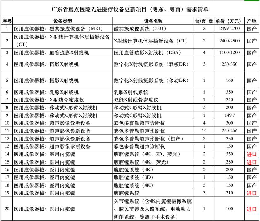 2月24日,廣東省縣域醫(yī)共體醫(yī)療設(shè)備更新項目(原中央蘇區(qū))、廣東省重點醫(yī)院先進醫(yī)療設(shè)備更新項目(粵東、粵西)啟動采購需求調(diào)查征集工作。