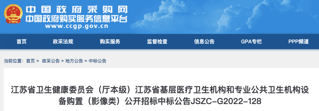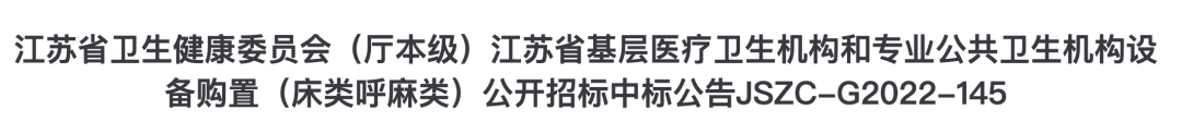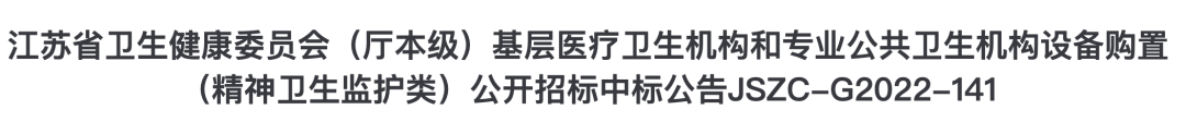 近日,江蘇省衛(wèi)生健康委員會(huì)(廳本級(jí))江蘇省基層醫(yī)療衛(wèi)生機(jī)構(gòu)和專業(yè)公共衛(wèi)生機(jī)構(gòu)設(shè)備購置項(xiàng)目中標(biāo)結(jié)果公布。