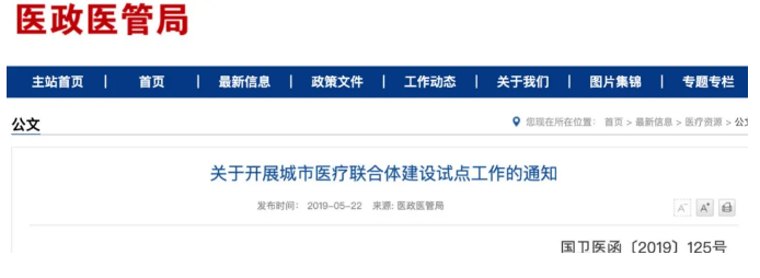 早在2019年5月,國家衛(wèi)健委就發(fā)布一則《關(guān)于開展城市醫(yī)療聯(lián)合體試點(diǎn)建設(shè)工作》的通知。