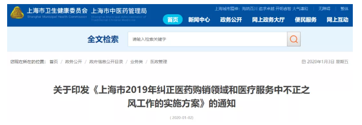 其實(shí),關(guān)于打擊醫(yī)療購銷領(lǐng)域不正之風(fēng)的問題。上海市衛(wèi)健委在2020年1月2日就作出過嚴(yán)格要求。