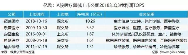 2018年Q3營(yíng)收排名首位的是不久前剛上市的邁瑞醫(yī)療。10月底,邁瑞醫(yī)療發(fā)布了首份成績(jī)單,Q3營(yíng)收34.71億元,預(yù)計(jì)2018年全年?duì)I業(yè)收入為130億元-143億元。除了政策的加持外,這得益于產(chǎn)品的優(yōu)勢(shì)。公開(kāi)資料顯示,邁瑞醫(yī)療每年研發(fā)投入占營(yíng)收比重超過(guò)10%,高于其他A股上市醫(yī)療器械企業(yè)研發(fā)投入的總和。