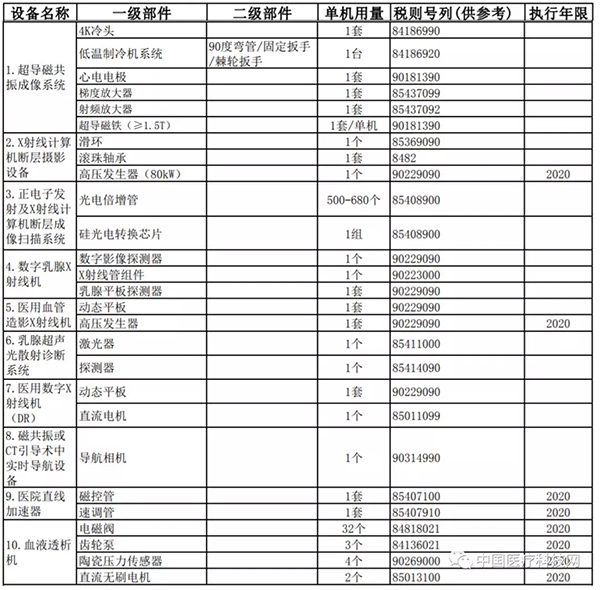 我們來看看附件1,共有10款醫(yī)療設(shè)備,而其中7款是目錄新修訂后增加進去的,這也就是說,在這一次修訂中,重大醫(yī)療設(shè)備將在進口關(guān)稅上獲得空前的扶持。