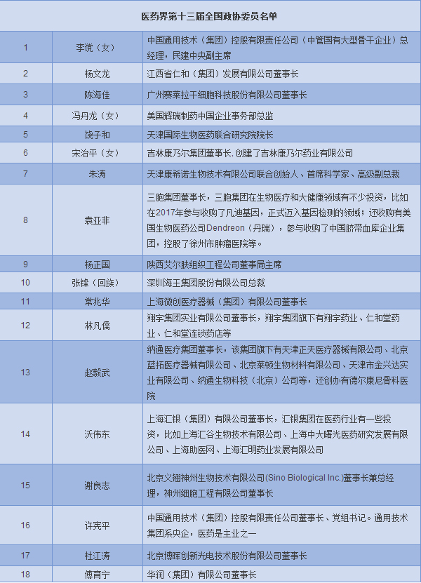第十三屆全國人大政協(xié)兩會召開在即,醫(yī)療器械圈有哪些代表、委員有了變動?賽柏藍器械整理如下: