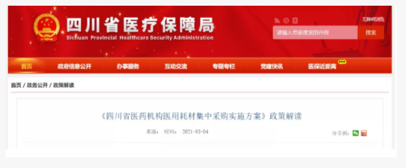 3月4日,四川省醫(yī)保局發(fā)布《四川省醫(yī)藥機(jī)構(gòu)醫(yī)用耗材集中采購實(shí)施方案》政策解讀。
