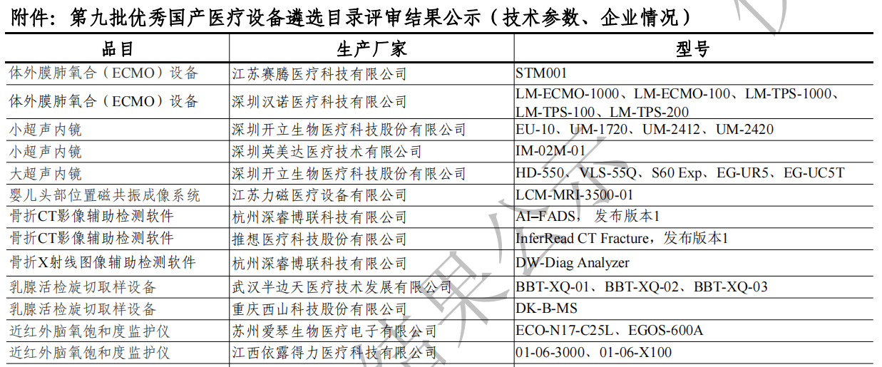 附:第九批優(yōu)秀國產(chǎn)醫(yī)療設(shè)備產(chǎn)品目錄