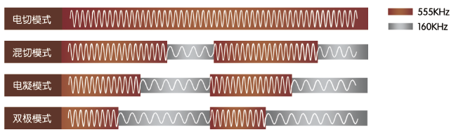 全新ACW弧光控制波形技術應用于婦科Leep手術各種模式下可變功率輸出,例如電凝,混切,雙極。與一般婦科Leep手術設備不同,ACW沒有“不工作時間”,它是脈沖持續(xù)變頻,能使婦科Leep手術輸出保持強勁,且明顯消除弧光。最終減少組織碳化和組織黏連導致的二次出血。