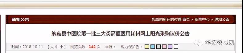 10月11日,貴州省納雍縣中醫(yī)院發(fā)布議價公告,宣布要對貴州省的第一批三大類高值醫(yī)用耗材進(jìn)行院內(nèi)公開招標(biāo)議價,對資質(zhì)審核合格的企業(yè)擇期進(jìn)行商務(wù)競爭性議價。報(bào)名時間為本月11日-17日 。