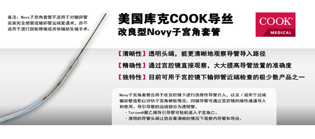 美國庫克COOK導絲應用于在宮腔鏡下進行選擇性導管導入,以及/或用于近端輸卵管造影以評估子宮角梗阻情況。操作簡單,安全有效,創(chuàng)傷小、無傷疤、痛苦小、術后恢復快、住院時間短、并發(fā)癥少。