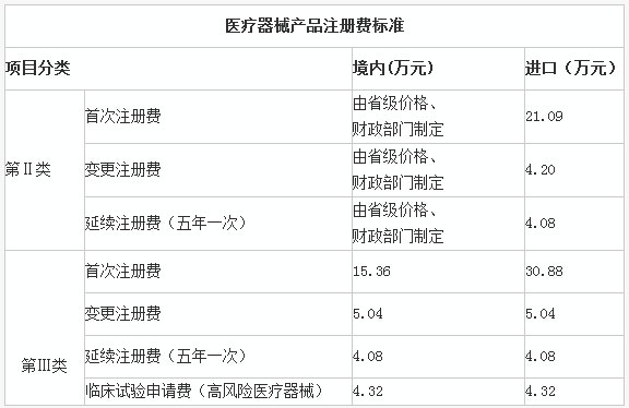 表1:我國(guó)2015年醫(yī)療器械產(chǎn)品注冊(cè)費(fèi)標(biāo)準(zhǔn)