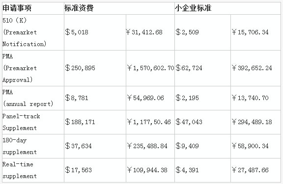 表3:美國(guó)2015年醫(yī)療器械注冊(cè)費(fèi)用清單(折合成人民幣按6.26元計(jì)算)